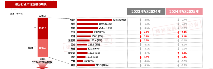 - 单相产品IT行业业绩体量高于Non-IT行业, IT应用相比2023年占比略有提高, 主要的业绩增长点集中于运营商和交通上, Non-IT应用占比下降较为严重,受OEM、医疗、金融和新能源领域项目订单量减少,同比去年下降18.8%。
