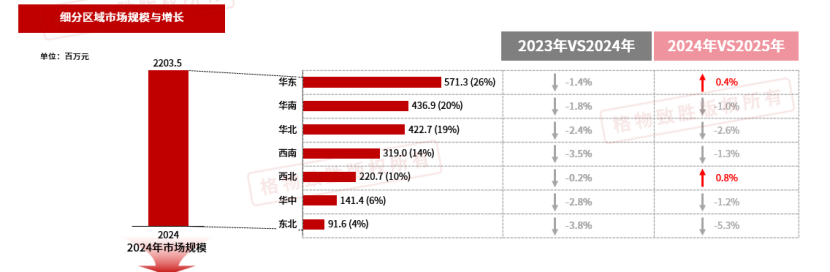 2024年单相UPS产品市场规模达到4亿元左右,业绩下滑2.4%;华北地区单相UPS应用集中在政府、金融和教育等领域,受政府及金融自建数据机房项目减少等因素共同影响。