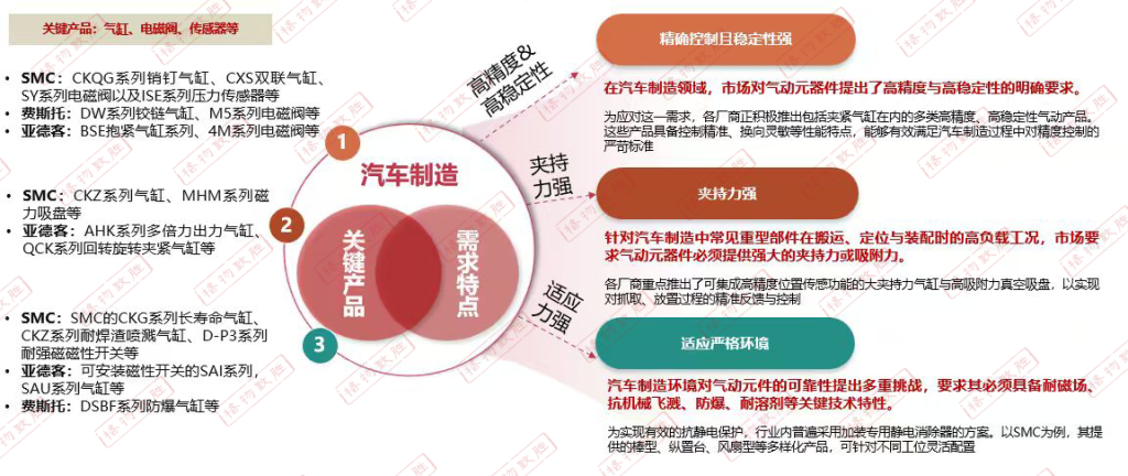 - 汽车制造业对气动技术的要求集中于高精度的运动控制、强大的夹持力与稳定性,以及适应焊接、喷涂等恶劣环境的卓越可靠性。
