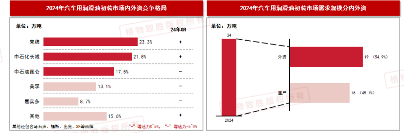 - 汽车用润滑油初装市场2024年需求规模大致为34万吨,呈逐年萎缩态势。